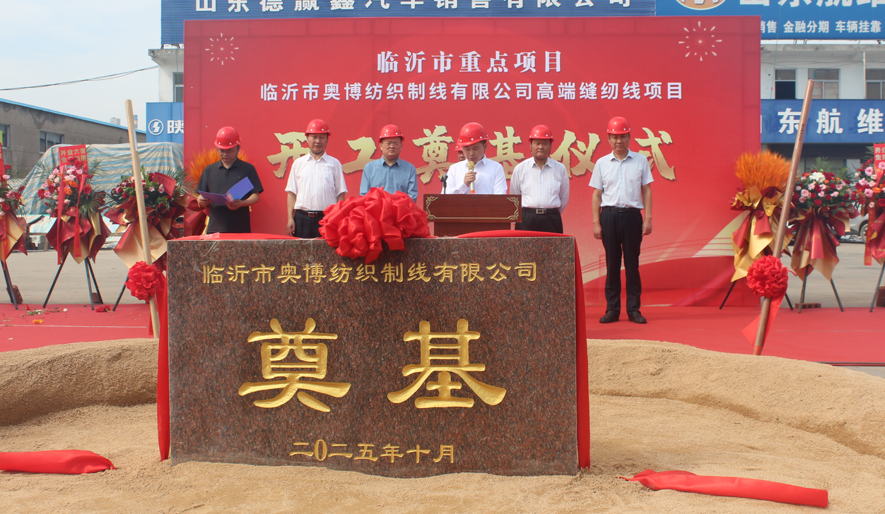 金秋十月,盛事共襄。2025年10月1日,在这寓意着丰收与希望的美好时节,临沂市奥博纺织制线有限公司高端缝纫线项目一期工程奠基仪式在临沂市兰山区工贸开发区隆重举行。这一刻,是奥博发展史上浓墨重彩的一笔,标志着我们向着更高远的目标迈出了坚实的一步。